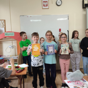 Na zakończenie Blanka z klasy 8 a opowiedziała młodszym kolegom bajkę o pluszowym misiu. [...]