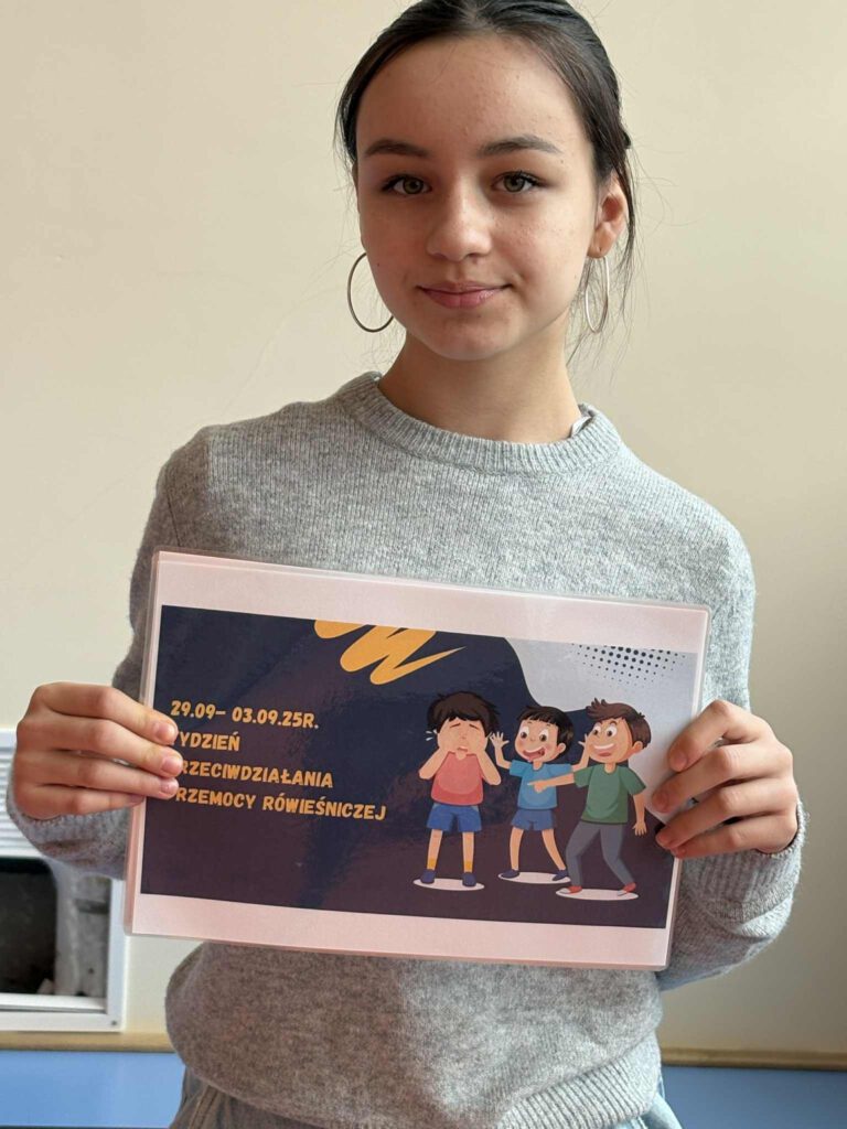 Pamiętajcie – każdy z nas ma wpływ na to, by szkoła była miejscem, w którym czujemy się dobrze i bezpiecznie. Bądźmy uważni na siebie nawzajem!